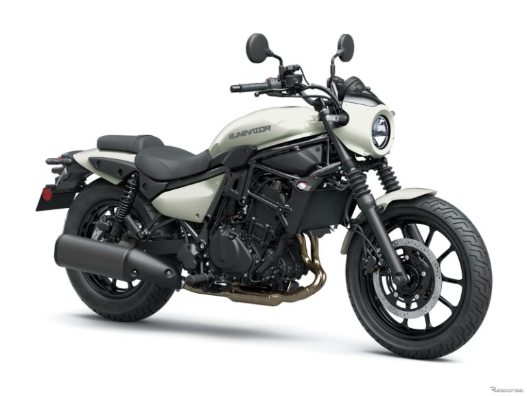 В движение японская новинка приводится за счет 451-кубового двигателя. Его максимальная отдача не превышает 41 л.с. (фото: Kawasaki). Он дополняется жидкостным охлаждением и 6-ступенчатой автоматической КПП. Есть также версия с 398-кубовым рядным двухцилиндровым двигателем с водяным охлаждением. Мотоцикл выделяется хорошей управляемостью и большим крутящим моментом на низких скоростях. Встроенный мотор обеспечивает линейный отклик вне зависимости от характера управления.
