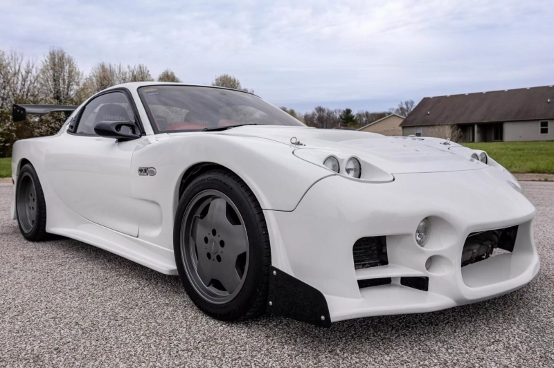 На аукцион выставили необычную Mazda RX-7. Роторное купе имеет индивидуальный обвес, задний спойлер и койловеры. Внутри автомобиля установлены кресла Bride, которые обеспечивают дополнительную поддержку. Однако они настолько толстые, что мешают дверям машины полностью закрыться. Изменились и технические характеристики японской модели, она стала мощнее.
