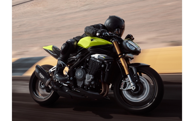 Мотоцикл оснащен полным спектром систем помощи водителю, включая управление подъемом переднего колеса, торможением двигателем и регулируемый круиз-контроль. Есть и пять различных режимов езды. В тормозной системе используются суппорты Brembo и регулируемые рычаги. Новинка доступна только в желтом цвете. Ее цена в Японии составляет 2 495 000 иен или 1,3 млн рублей в эквиваленте (фото: Triumph). Автор: Павел Афанасьев